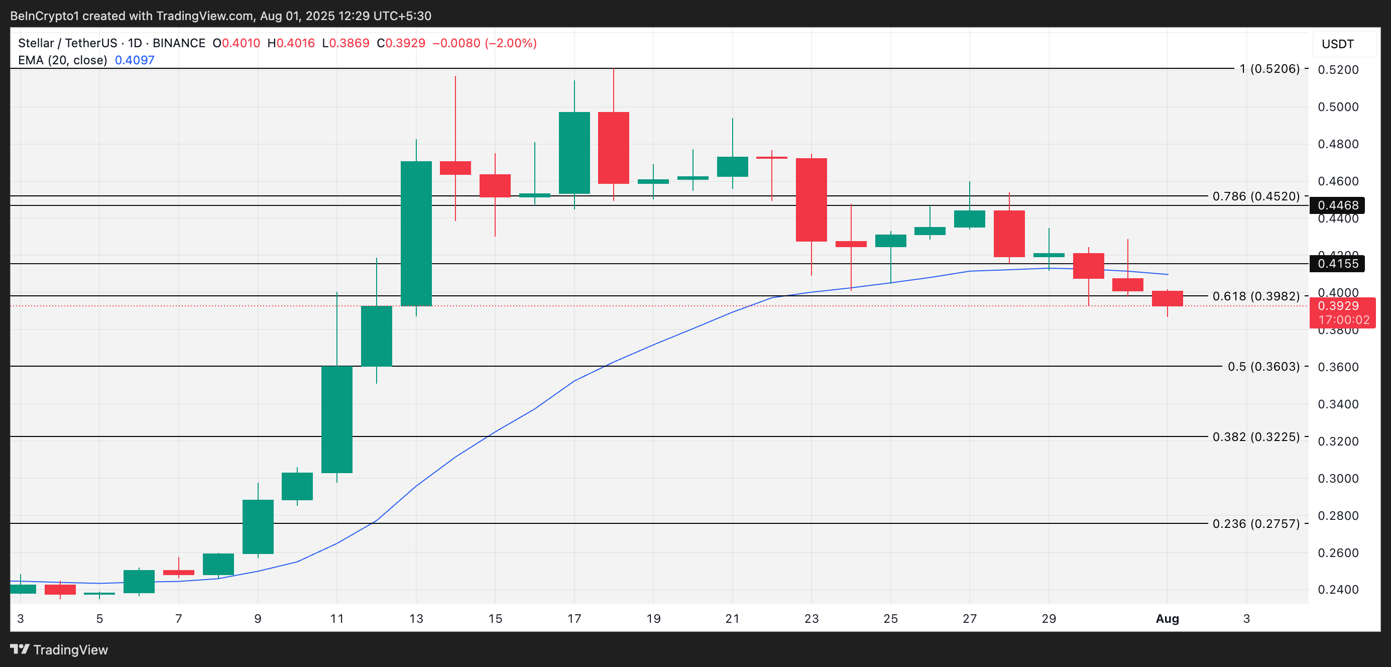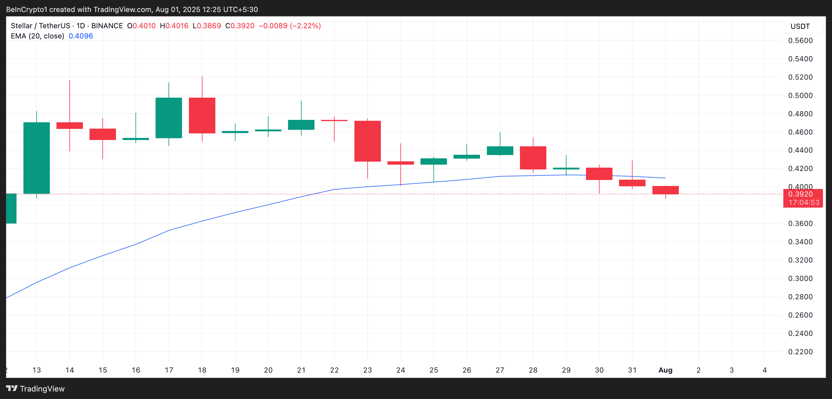 Hiện đang giao dịch quanh mốc 0,39 đô la, altcoin này đã mất khoảng 14% giá trị chỉ trong hơn hai tuần, khi tâm lý bi quan gia tăng trước thềm tháng 8 vốn dĩ thường khó khăn đối với XLM.