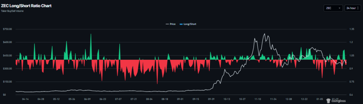 Tỷ lệ long/short của ZEC | Nguồn: Coinglass