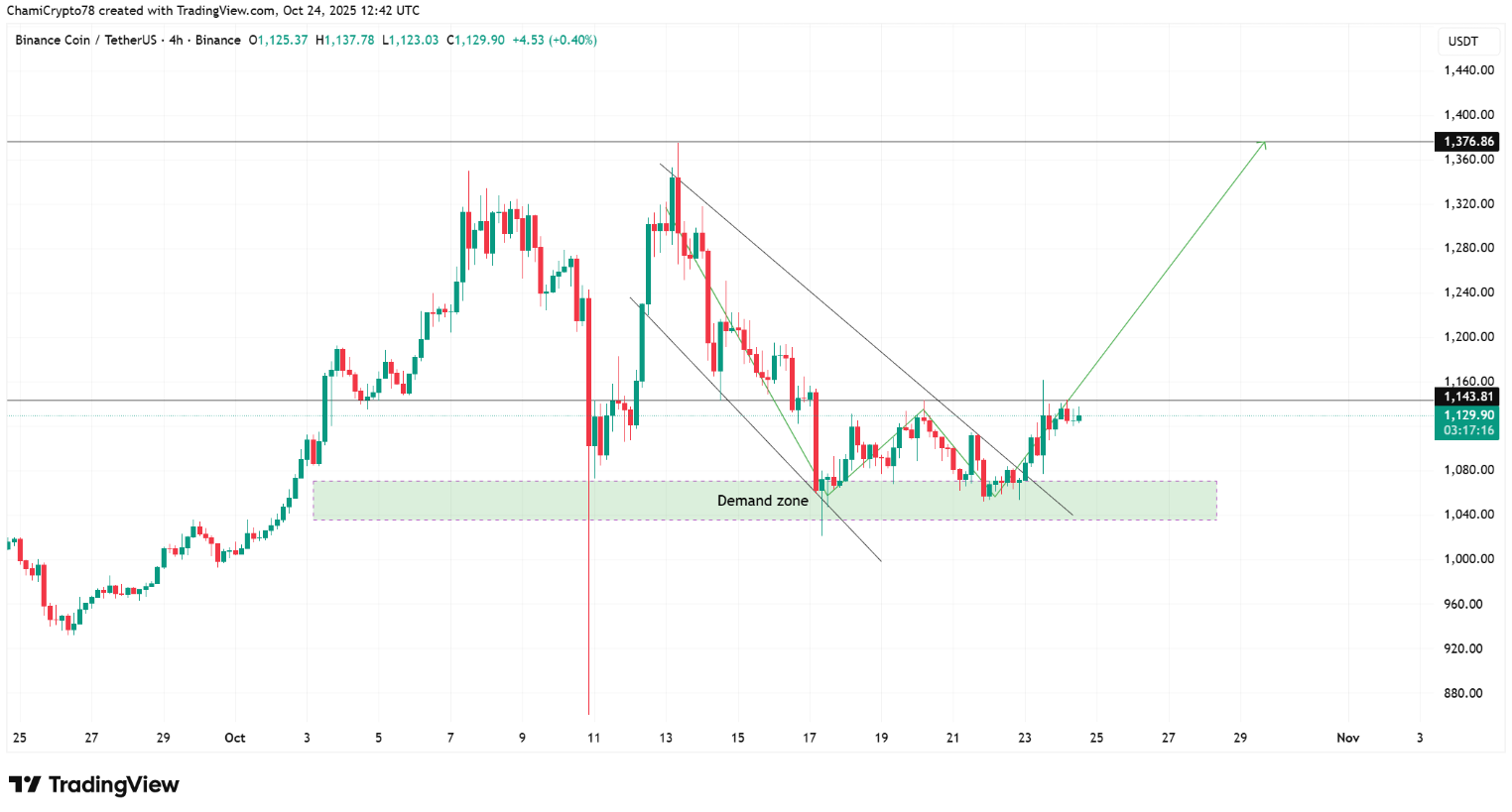 BNB bật mạnh từ vùng cầu, hướng mục tiêu 1.376 USD